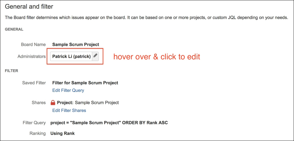 Users who can configure the agile board's settings. You can add more administrators by either selecting the users directly, or by selecting a group. |