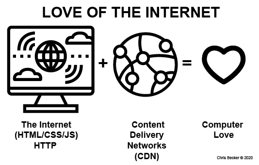 The origins of the internet has its roots in Cold War government research going as far back as the 1960s and programs like DARPA but in 1991, Tim Berners Lee invented the World Wide Web and thus the consumer internet, allowing computers to communicate over a network through HyperText Transfer Protocol (HTTP). The world was then fundamentally altered. Using HTML (Hypertext Mark-Up Language), websites could publish their content for all the world to see through a web address. HTML was limited as a coding language and was then augmented by Cascading Style Sheets (CSS), which impacted the look and feel of a web page, and then JavaScript (JS), which impacted their behavior. This built the foundation for modern web pages that both function well and look good. The internet is loved by many because of a combination of standardized computer code (HTML/CSS/JS) plus a way to quickly deliver content around the globe through content delivery networks (CDNs):