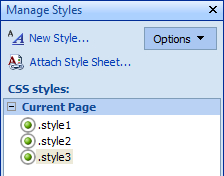 If we peek into our Manage Styles task pane, we can see the styles we have created on our page:
