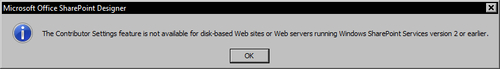 If we were to try to enable collaboration on our Wine Company site, we would get the following message: