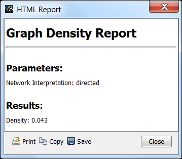 Click on OK. This opens up the following Graph Density Report window: