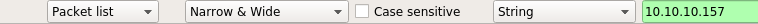 For searching packets that meets a criterion use the Find tool bar adjacent to display filter. You can access the Find utility by navigating to Edit | Find packets or using the shortcut Ctrl + F: