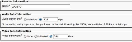 Specify the Audio Bandwidth available to the location or select Unlimited.