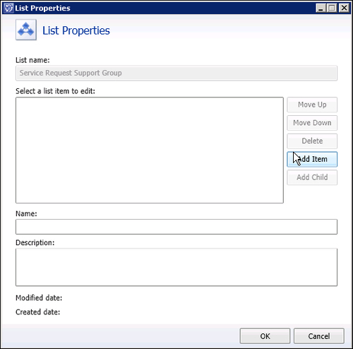 Service Request Support Groups open the SCSM 2012 console and navigate to Library | Lists. In the filter field type Service Request Support Group and the list we need will be shown.