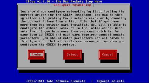 A slight complication at this stage is that the first card IPCop discovers will be used as the Green network interface if we...