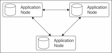 This is the standard example we have been mostly using until now, each node houses both our application itself, and data persistence and processing. It is most useful when we have an application that is primarily focused towards asynchronous or high performance computing, and will be executing lots of tasks on the cluster. The greatest drawback is the inability to scale our application and data capacity separately.