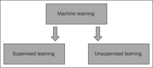 There are different categories of machine learning techniques and in this chapter we will see the two most relevant branches—supervised and unsupervised learning, as shown in the following figure: