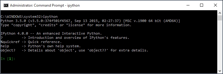 Typing ipython into your command line should present you with a window that resembles this: