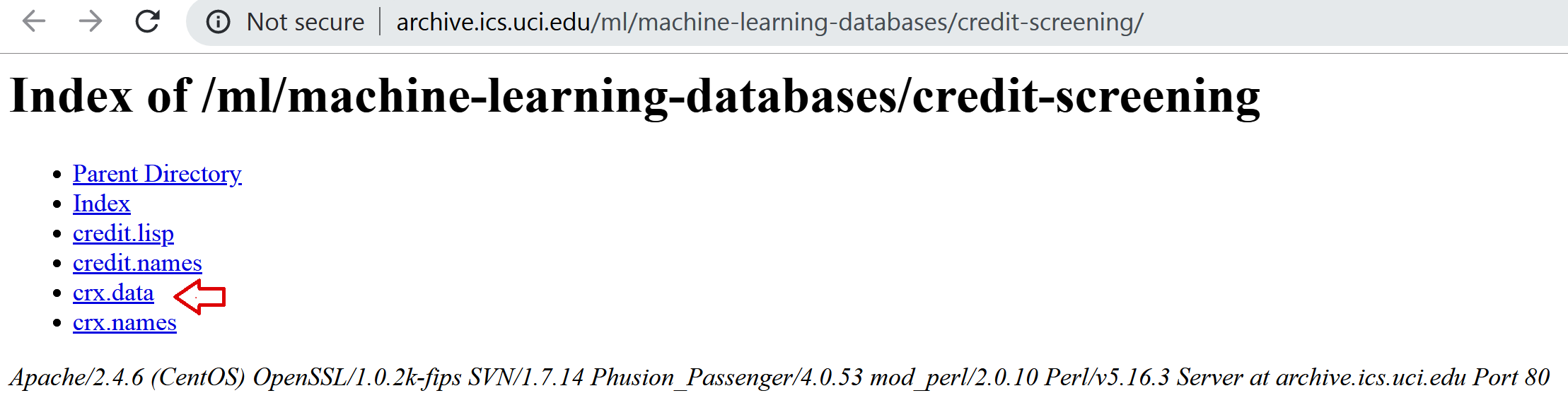 We will also use the Credit Approval Data Set, which is available in the UCI Machine Learning Repository (https://archive.ics.uci.edu/ml/datasets/credit+approval).