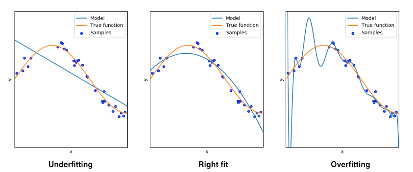 The discussion of overfitting and underfitting remains incomplete without the following diagram (shown by Andrew Ng during his flagship course, Machine Learning):