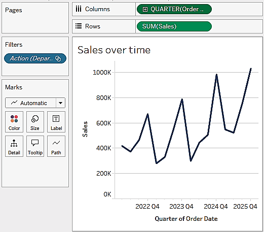 Figure 1.20: Your final view shows sales over each quarter for the last several years