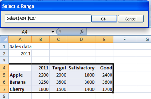 Bind the By Range field to the spreadsheet range from A4 to E7.