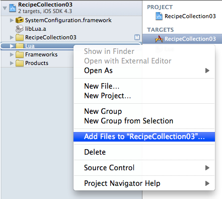 Right-click the Lua group and select Add Files to " Your Project ":