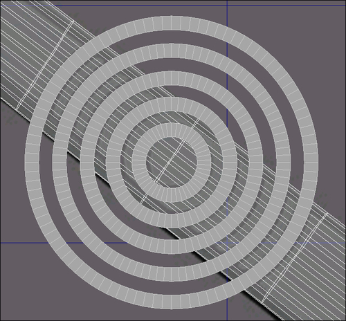 Concentric tubes will allow us to cut away from the handle the distinctive curves in the middle. The distance between the Inner Radius and Outer Radius is 4 in each case, but as they get larger, they have more sides segments. Be sure to drop the default value of Height Segments from 5 to 1, as fewer segments is better when the height of the tube doesn't feature any curvature. A Height value of 5 is enough.