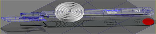 Once the text objects are extruded and cleaned, we can Boolean them where they overlap the scalpel model and then clean up the result.