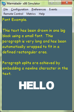 The first example project demonstrates the use of the IwGxFont API and can be seen in the following screenshot. This example demonstrates how to use multiple fonts in a project, preparing text for printing, and scaling a font up and down in size:
