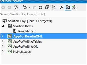 AppForReadingXML: This reads the sample XML files from disk, populates the Payments table, and sends the data through a SQL Queue