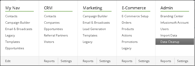 Hover over the main navigation and in the Admin column, select Data Cleanup: