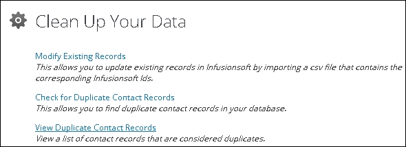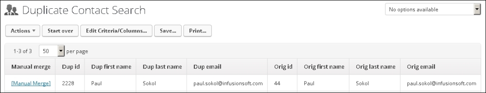 The previous recipe will only return a list of contacts the system thinks may be duplicates. It is still necessary to merge any duplicate records found.