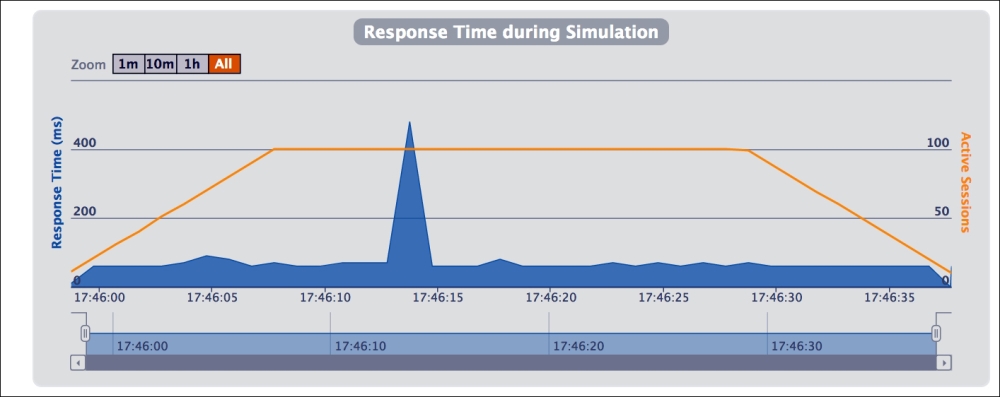 Although the Neo4j dashboard gives a good idea of the database state and metrics, you can use Gatling, a load testing framework based on Scala, Netty, and Akka that can test your whole application to measure end-to-end performance. The only challenge of this tool is that you need to write your code in Scala. You can use the built-in HTTP library to send requests to the REST server and evaluate the response and create simulations in real time to measure performance. You can learn about Gatling in detail at http://gatling.io/. Gatling...