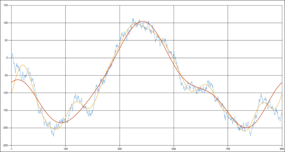 A typical feature of a FFT filter is at the edges, where the filter follows the trend of the whole dataset instead of the local data. In the preceding picture, this error is visible on the right-hand side, where the FFT produces...