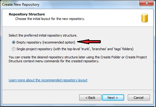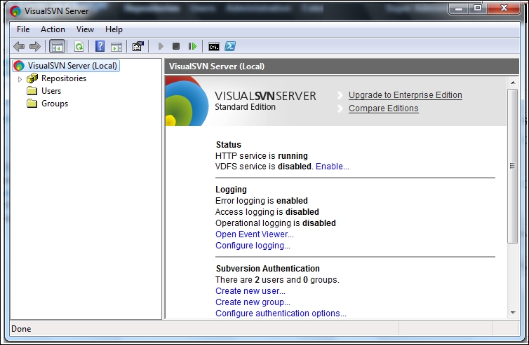 Start the VisualSVN server from the Start menu. We will get the following window: