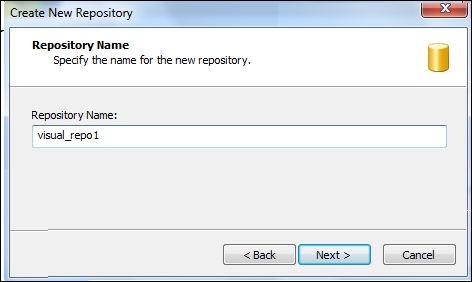 Give the repository the name visual_repo1 and click on Next as shown in the following screenshot: