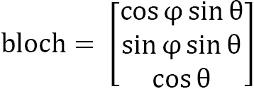 bloch=[cos(bits[bit]["phi"])*sin(bits[bit] ["theta"]),sin(bits[bit]["phi"])*sin(bits[bit] ["theta"]),cos(bits[bit]["theta"])]