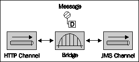 A protocol bridge can be viewed as a combination of channel adapters. An adapter can function as a client to the messaging system. With the client role, the adaptor can invoke application functions through the application supplied interfaces. Thus a HTTP channel adapter can be used to access the HTTP service and publish messages on a JMS channel. Similarly, the same adapter can also receive messages from the JMS channel and invoke...