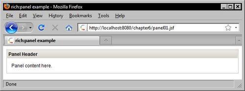 The JBoss RichFaces library includes a number of useful components for rendering panels in our views. Using panels is a nice way to organize visual elements in our user interface.