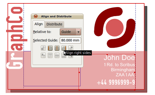 Click on the logo and the Align right sides button of the Align window. Select the address frame and do the same. While the address frame is still selected, go to the PP, Text tab, and align the text to the right. You may further enhance the whole if needed.