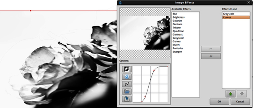 There is a little list of effects and they are very basic operations. You apply an effect by selecting it in the left-hand column and then clicking on the >> button. Applied effects are listed in the right-hand column. You can apply as many effects as you need, but generally two or three will be enough. If the effect you chose has some parameters, they appear under the image preview, on the...