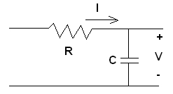 The voltage across the capacitor is a function of time. Let's set an initial voltage v0 and compute the voltage after one second: