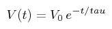 The voltage across the capacitor can be described by a linear, first-order differential equation. Eventually we will learn to solve differential equations with Sage, but for now we will just use the solution, which is well known: