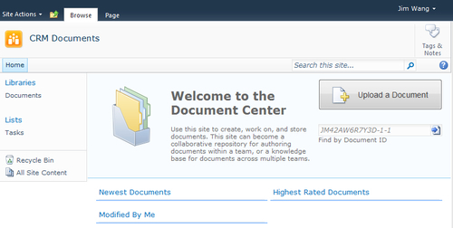 The following screenshot shows the homepage of the CRM Documents.