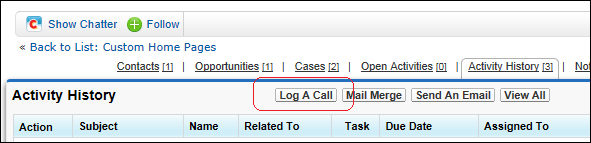 Using the following steps, we are going to simplify the Log A Call feature with "URL hacking" from a custom button on the account page and improve the user experience: