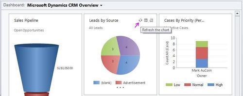 The chart and list dashboard components in Dynamics CRM 2011 allow users to see live data at a glance. The dashboard data is live, but sometimes you might need to force a refresh of the data you are viewing.