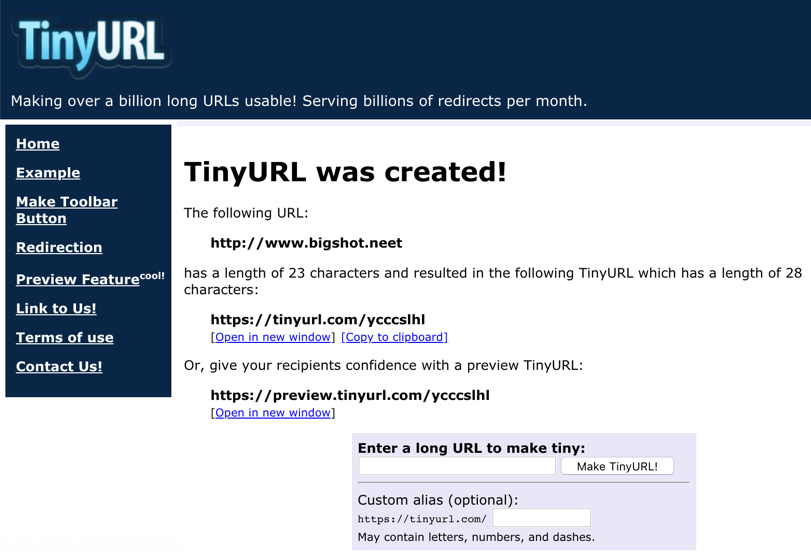 It still looks weird, but if we use a shortener, we can get a URL that appears normal: