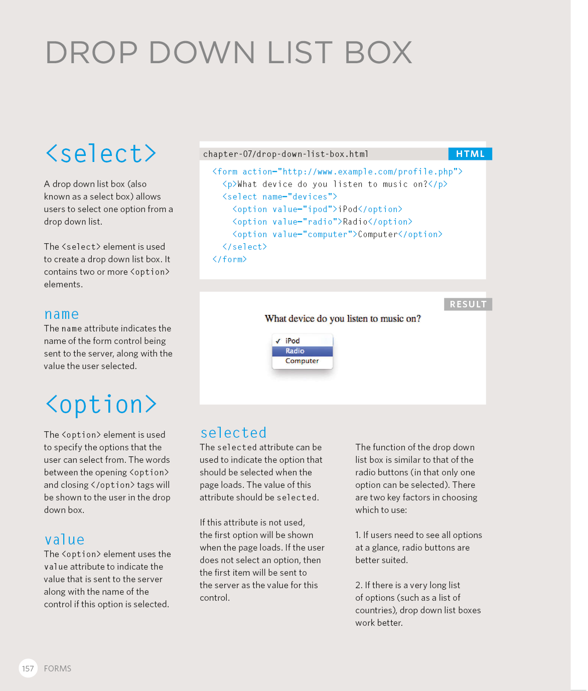 Every day, more and more people want to learn some HTML and CSS. Joining the professional web designers and programmers are new audiences who need to know a little bit of code at work (update a content management system or e-commerce store) and those who want to make their personal blogs more attractive. Many books teaching HTML and CSS are dry and only written for those who want to become programmers, which is why this book takes an entirely new approach. This educational book is one that you will enjoy picking up, reading, then referring to. It will make you wish other technical topics were presented in such a simple, attractive and engaging way!