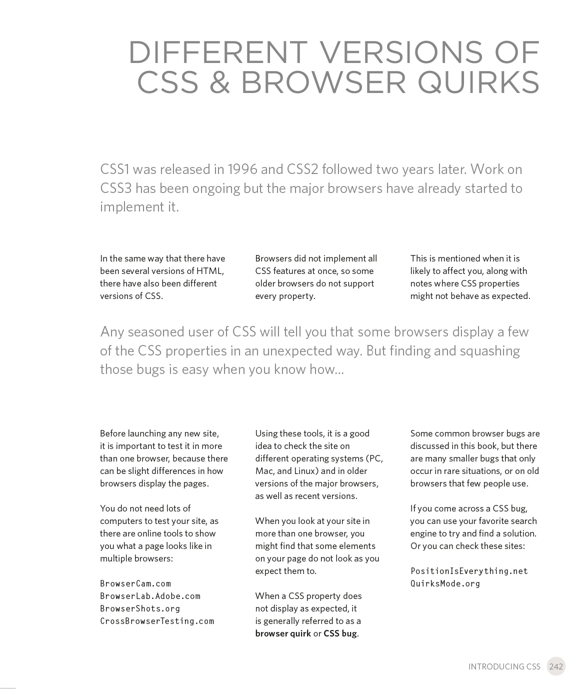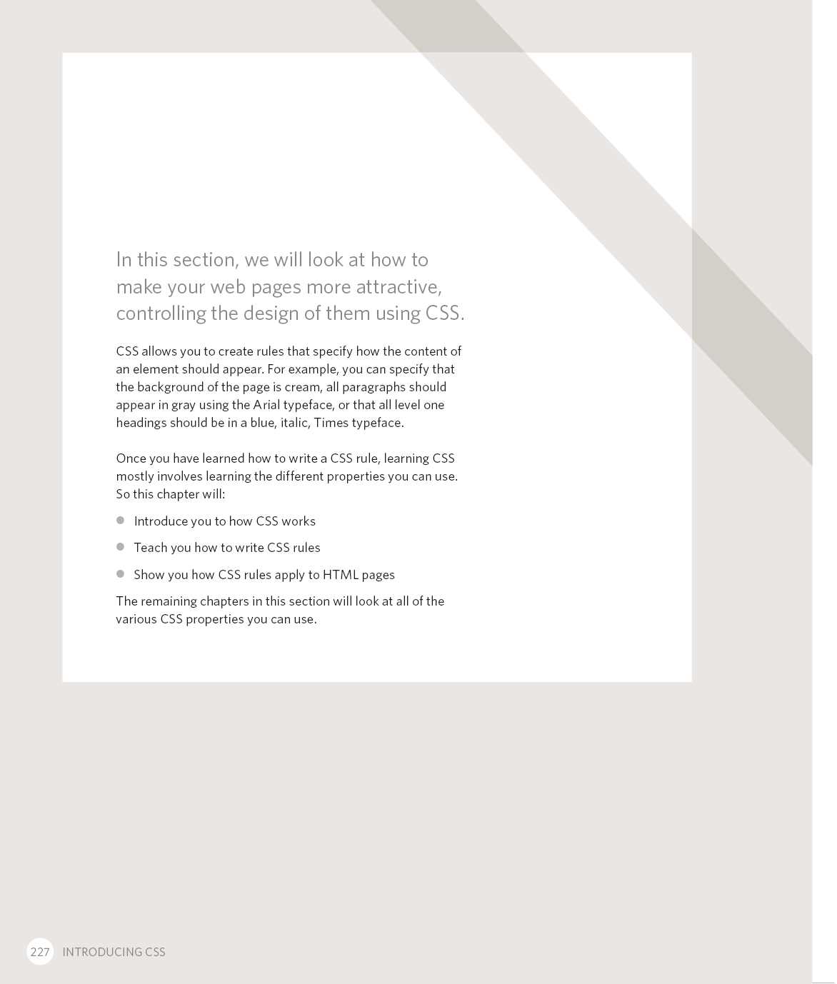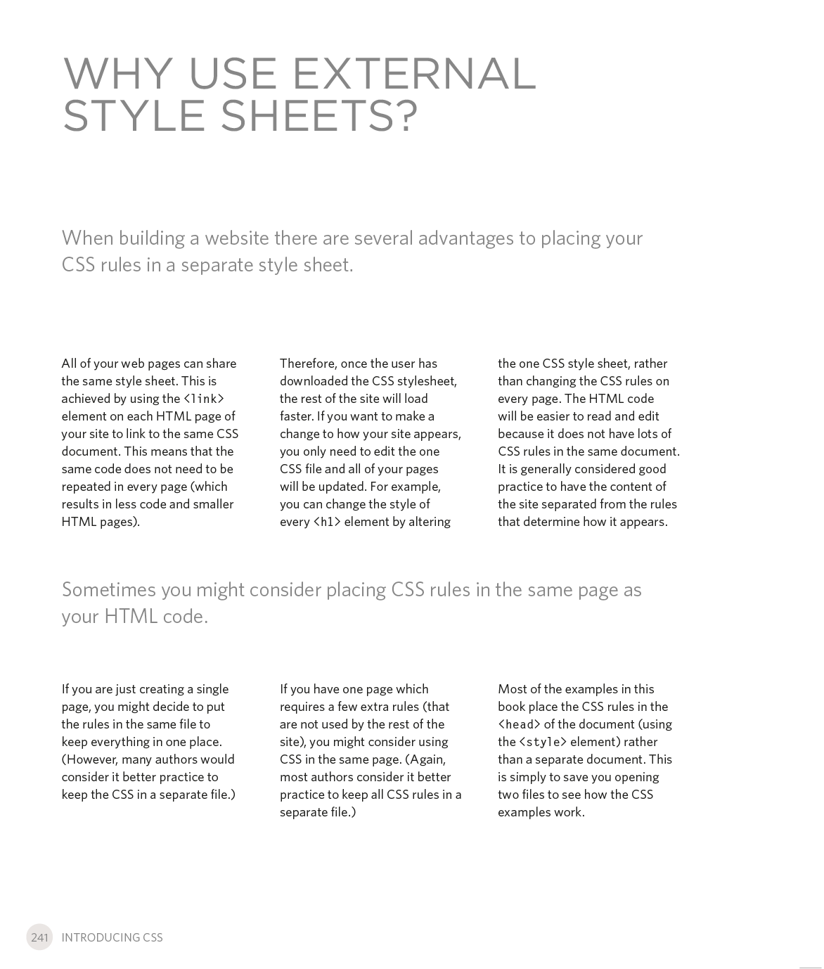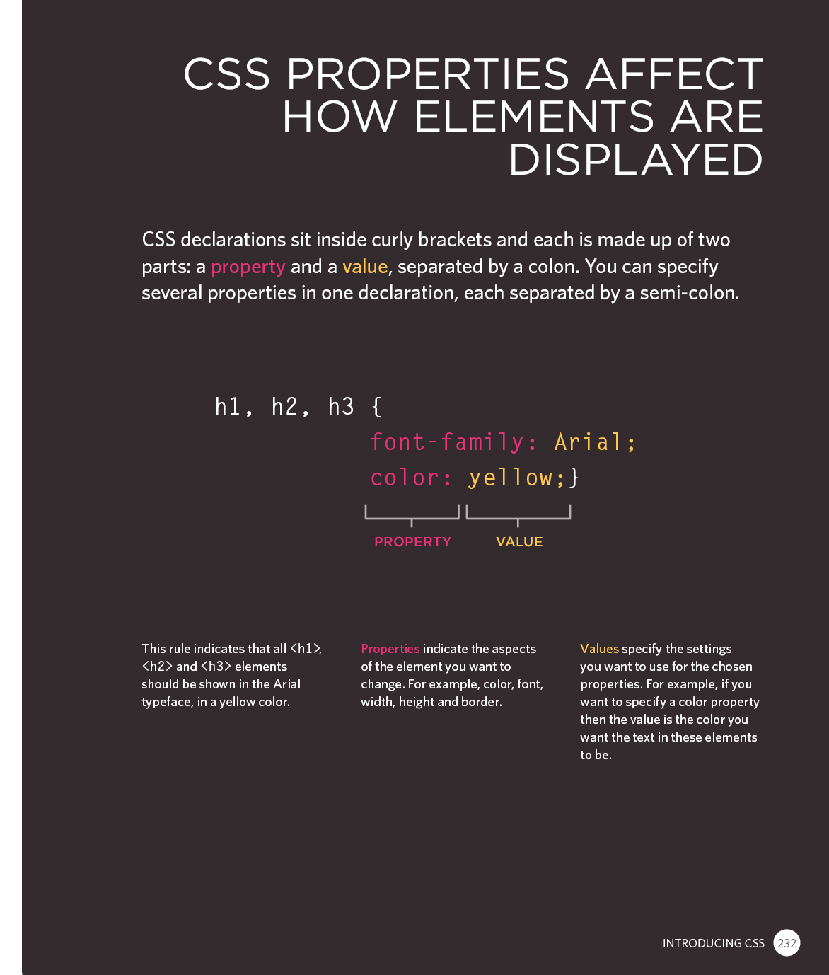 Every day, more and more people want to learn some HTML and CSS. Joining the professional web designers and programmers are new audiences who need to know a little bit of code at work (update a content management system or e-commerce store) and those who want to make their personal blogs more attractive. Many books teaching HTML and CSS are dry and only written for those who want to become programmers, which is why this book takes an entirely new approach. This educational book is one that you will enjoy picking up, reading, then referring to. It will make you wish other technical topics were presented in such a simple, attractive and engaging way!