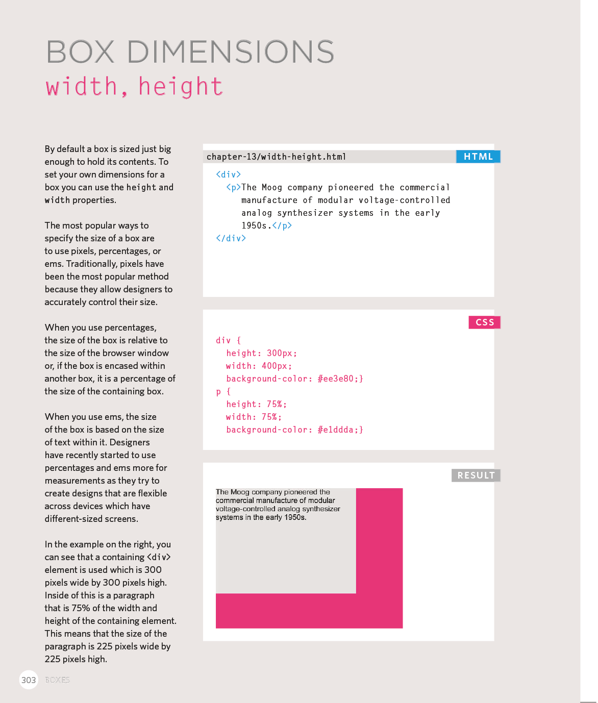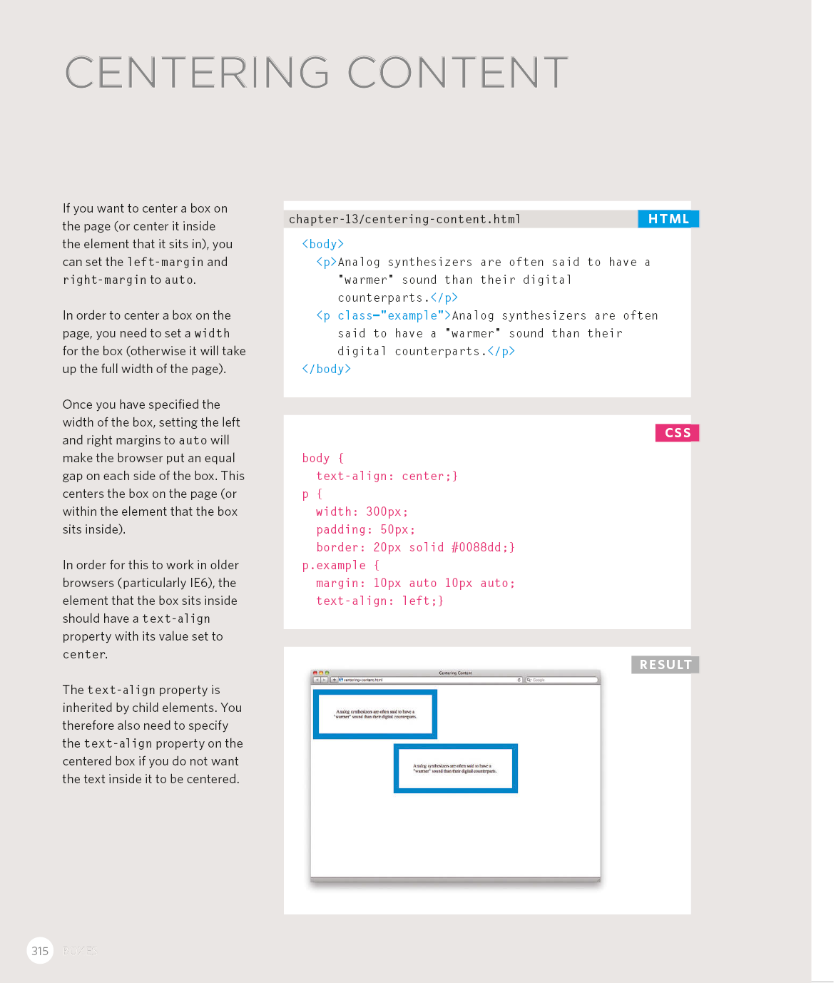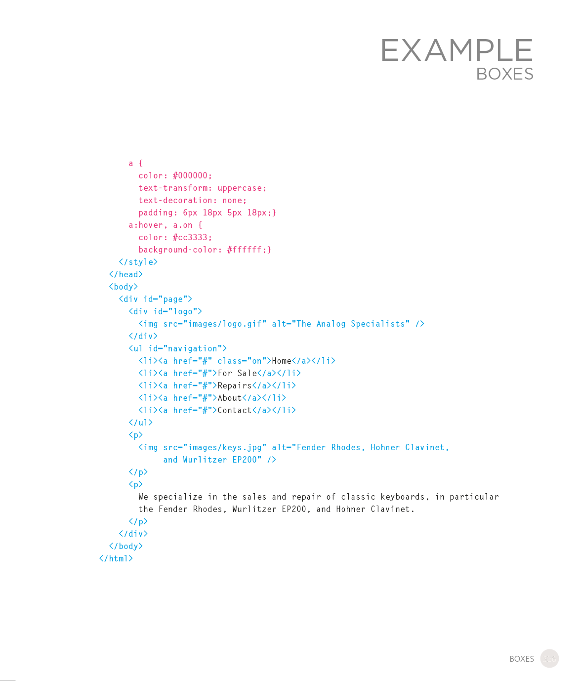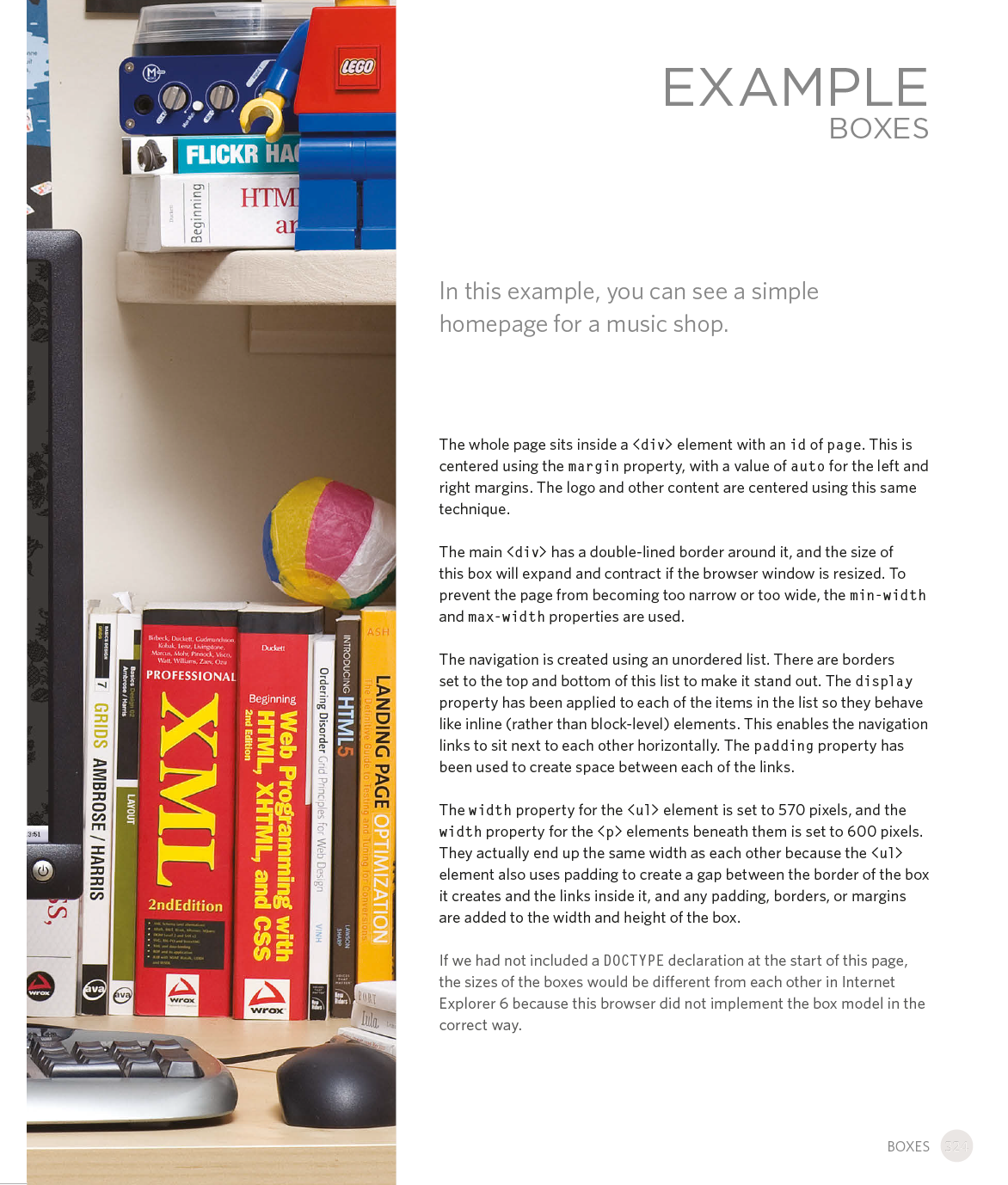 Every day, more and more people want to learn some HTML and CSS. Joining the professional web designers and programmers are new audiences who need to know a little bit of code at work (update a content management system or e-commerce store) and those who want to make their personal blogs more attractive. Many books teaching HTML and CSS are dry and only written for those who want to become programmers, which is why this book takes an entirely new approach. This educational book is one that you will enjoy picking up, reading, then referring to. It will make you wish other technical topics were presented in such a simple, attractive and engaging way!