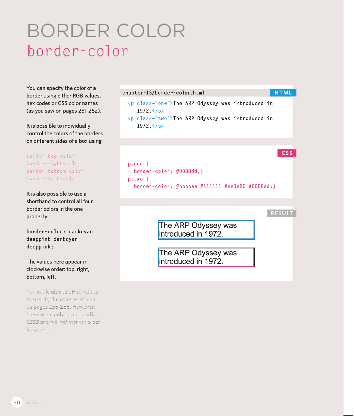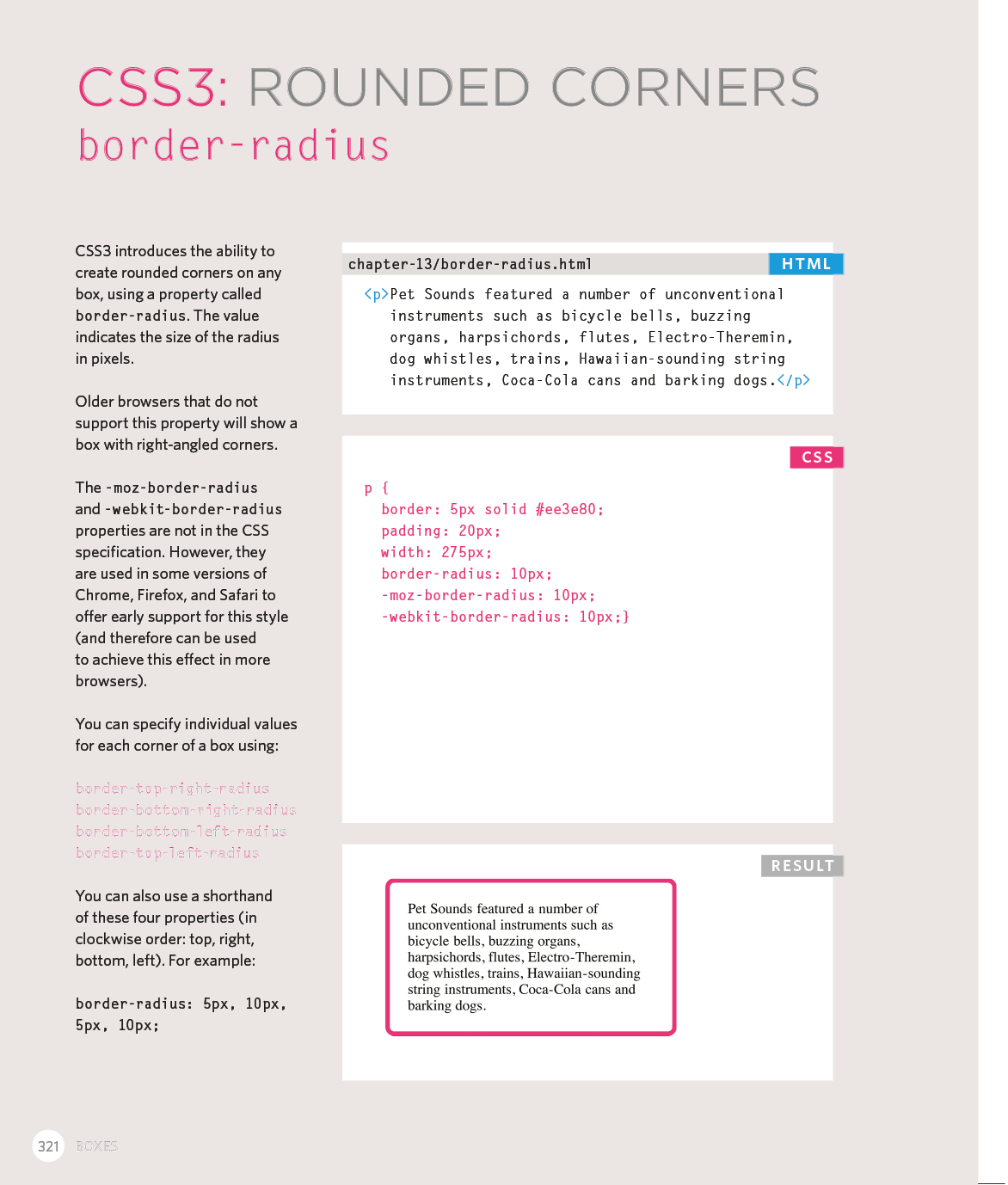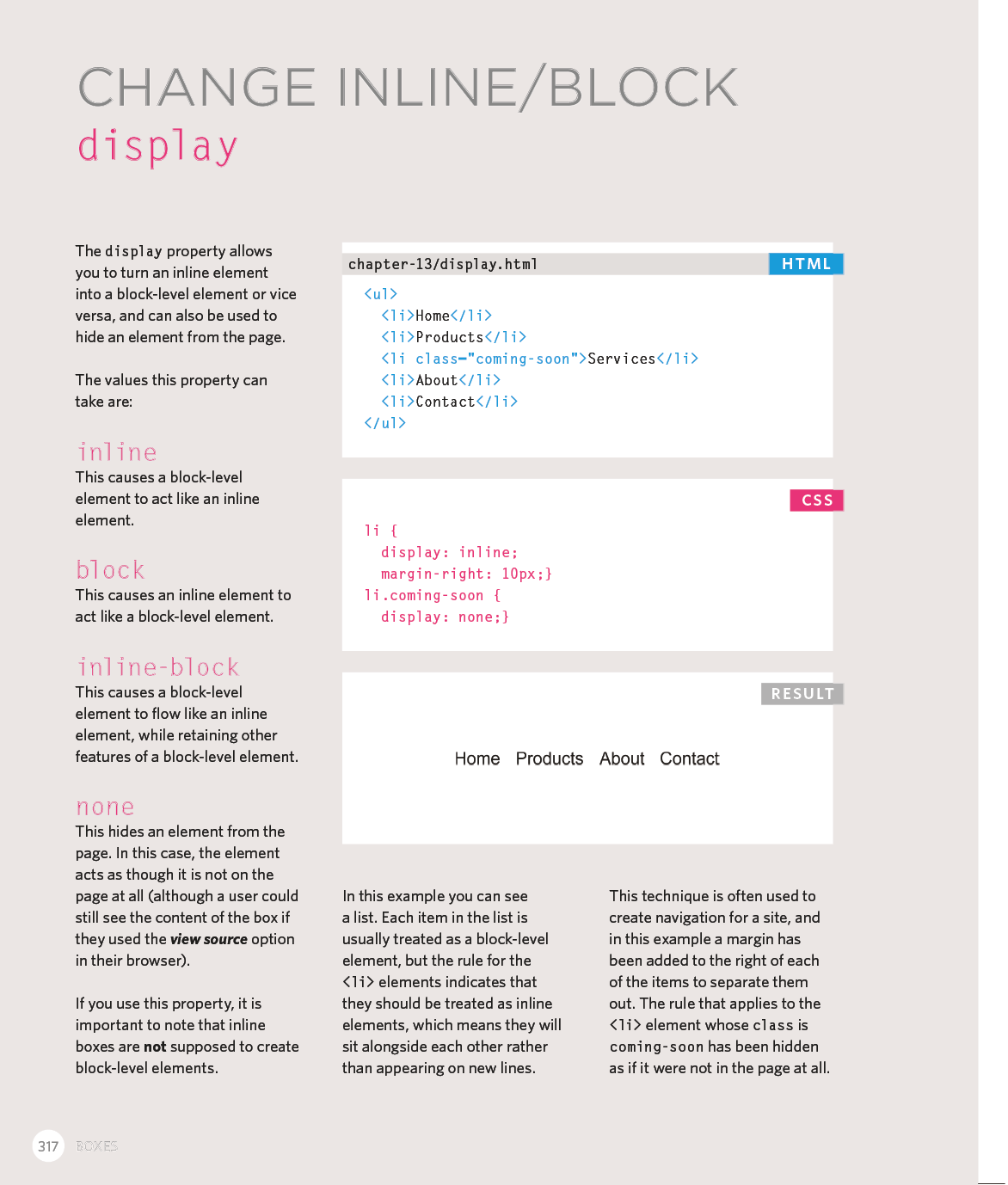 Every day, more and more people want to learn some HTML and CSS. Joining the professional web designers and programmers are new audiences who need to know a little bit of code at work (update a content management system or e-commerce store) and those who want to make their personal blogs more attractive. Many books teaching HTML and CSS are dry and only written for those who want to become programmers, which is why this book takes an entirely new approach. This educational book is one that you will enjoy picking up, reading, then referring to. It will make you wish other technical topics were presented in such a simple, attractive and engaging way!