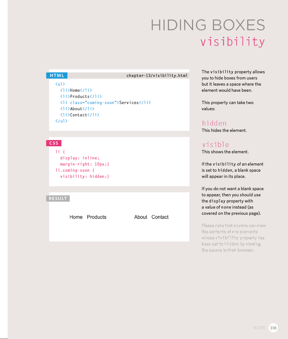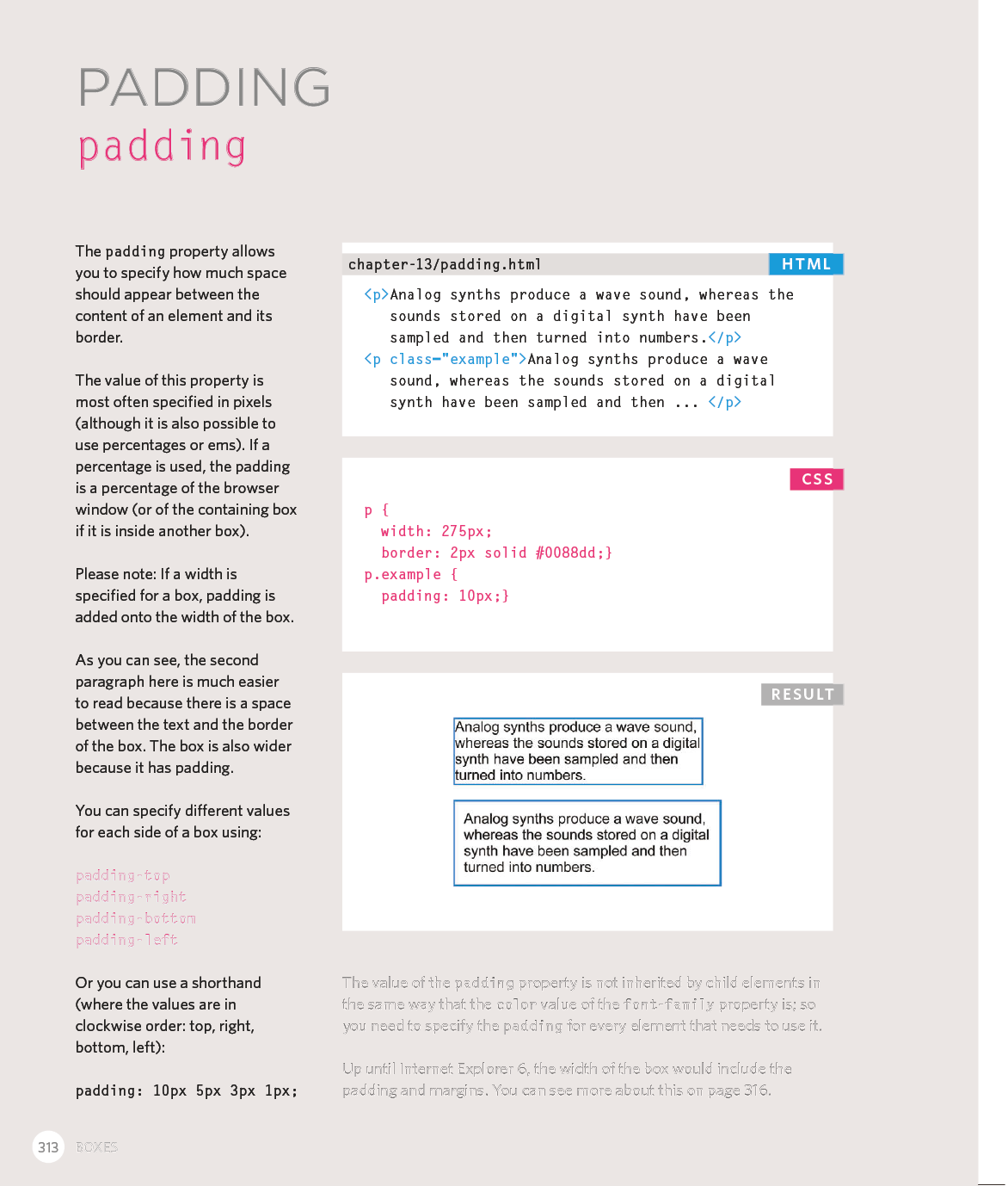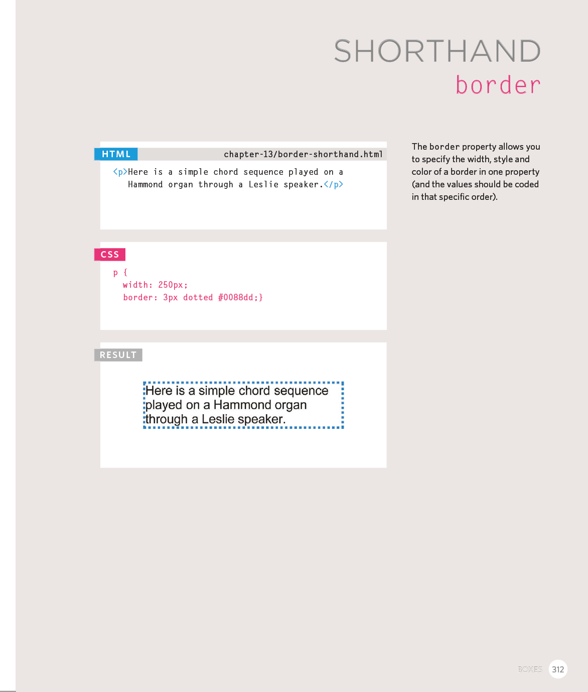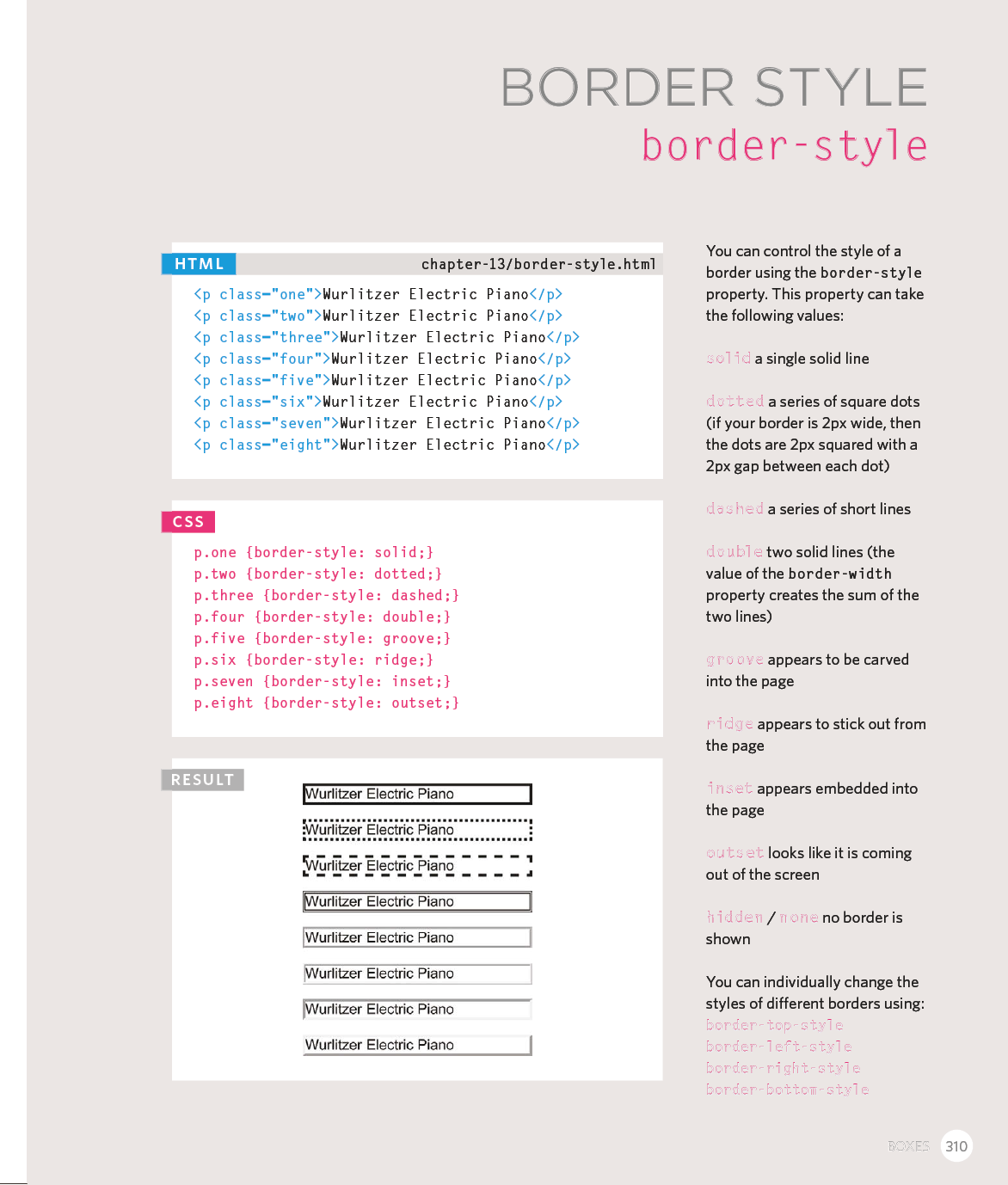 Every day, more and more people want to learn some HTML and CSS. Joining the professional web designers and programmers are new audiences who need to know a little bit of code at work (update a content management system or e-commerce store) and those who want to make their personal blogs more attractive. Many books teaching HTML and CSS are dry and only written for those who want to become programmers, which is why this book takes an entirely new approach. This educational book is one that you will enjoy picking up, reading, then referring to. It will make you wish other technical topics were presented in such a simple, attractive and engaging way!