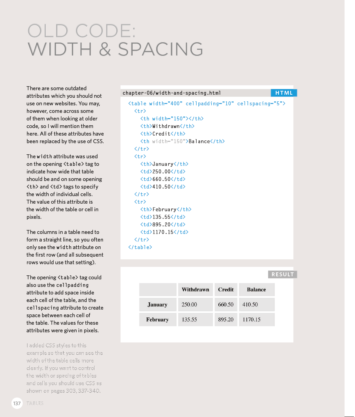 Every day, more and more people want to learn some HTML and CSS. Joining the professional web designers and programmers are new audiences who need to know a little bit of code at work (update a content management system or e-commerce store) and those who want to make their personal blogs more attractive. Many books teaching HTML and CSS are dry and only written for those who want to become programmers, which is why this book takes an entirely new approach. This educational book is one that you will enjoy picking up, reading, then referring to. It will make you wish other technical topics were presented in such a simple, attractive and engaging way!