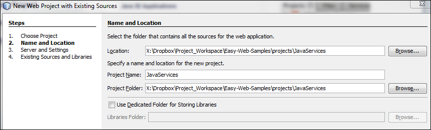 Then, specify the project root for the Location field as shown in the following screenshot: