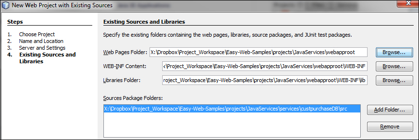 You'll also need to specify the project's webapproot folder for the Web Pages Folder field before you can complete the wizard.