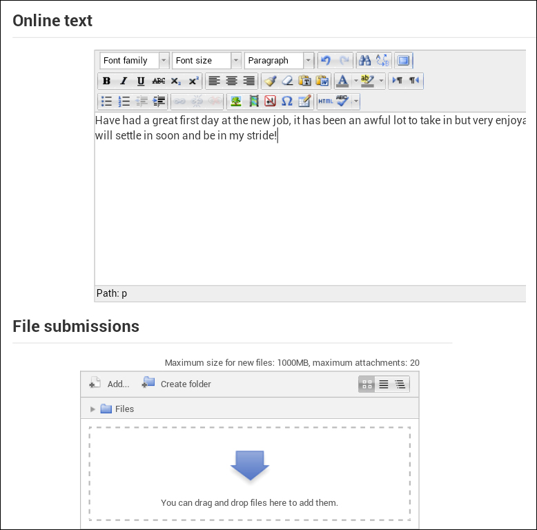 The notes will then appear on the main page. Your Submission status will show as Draft (not submitted) and Grading status will show as Not graded. You can at this point choose to either Edit my submission or Submit assignment. You can now add further notes and files in a similar manner throughout your placement.