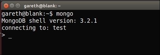 This will start the interactive MongoDB shell as in the following image, which you can exit at any time by pressing Ctrl + C or by typing exit into the shell and pressing Enter.