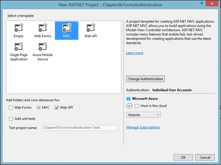 Name the project as Chapter06.FormsAuthentication and click OK:
