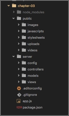 Create a folder called server, and inside of it, create these folders: